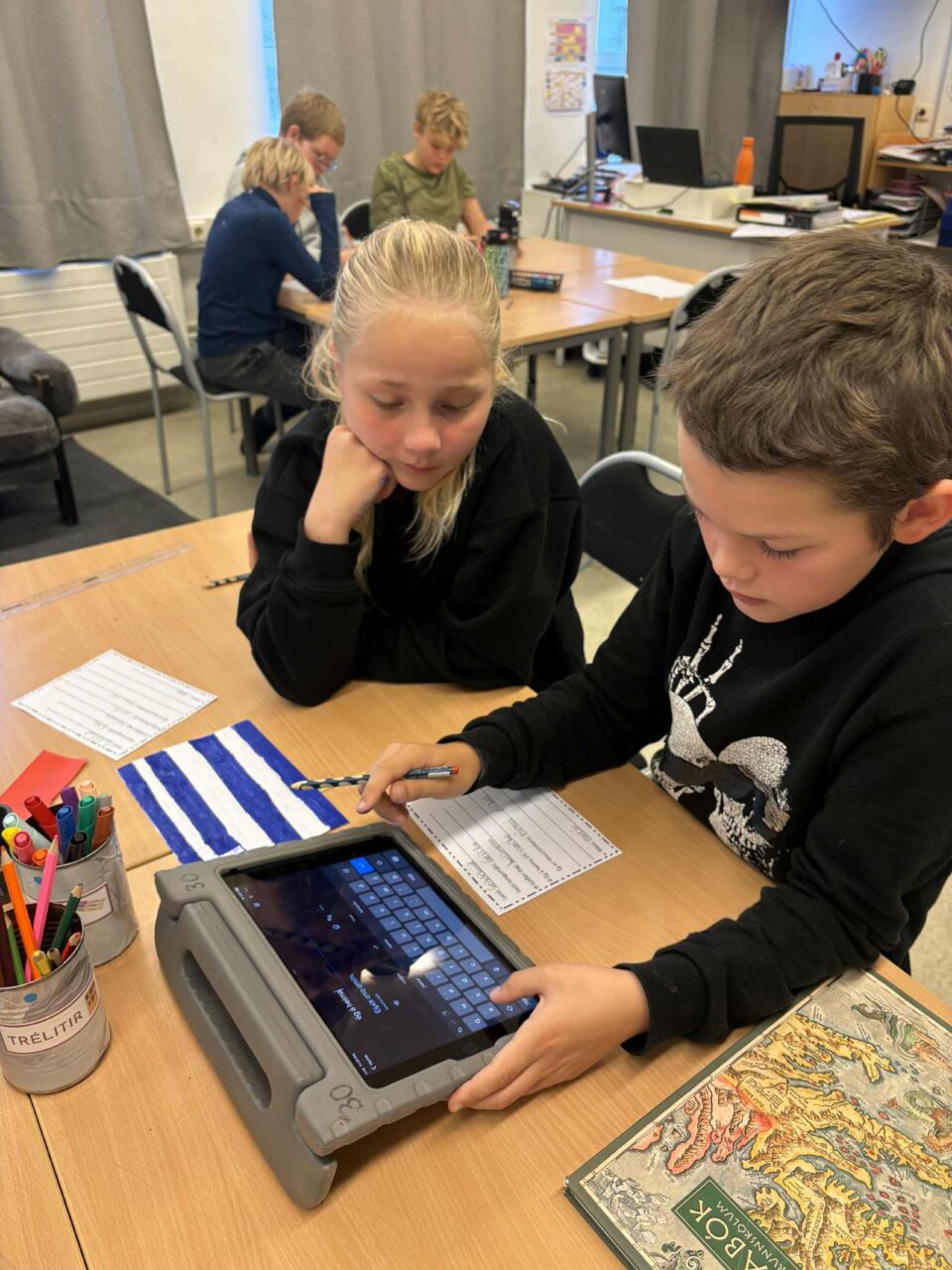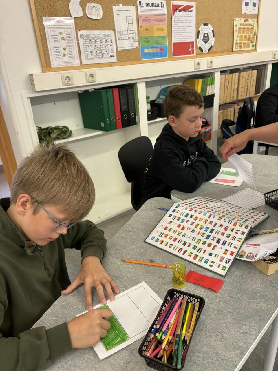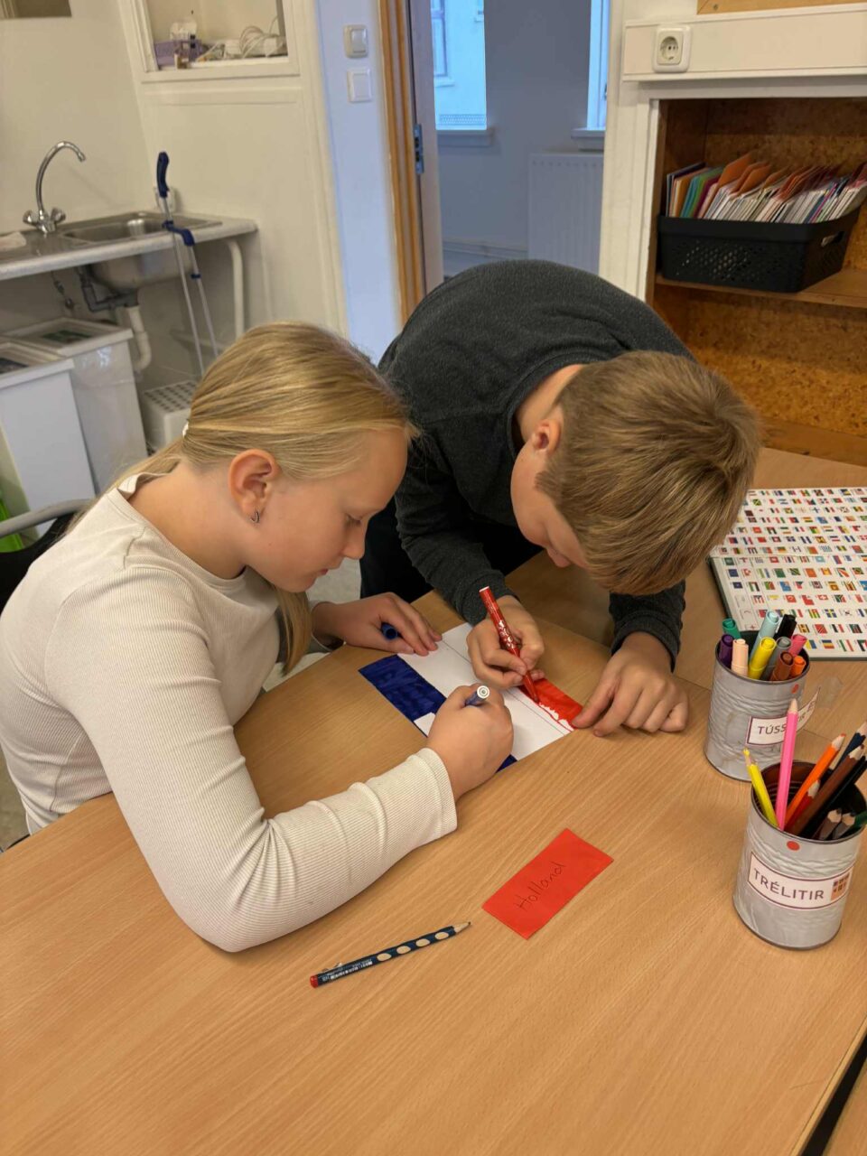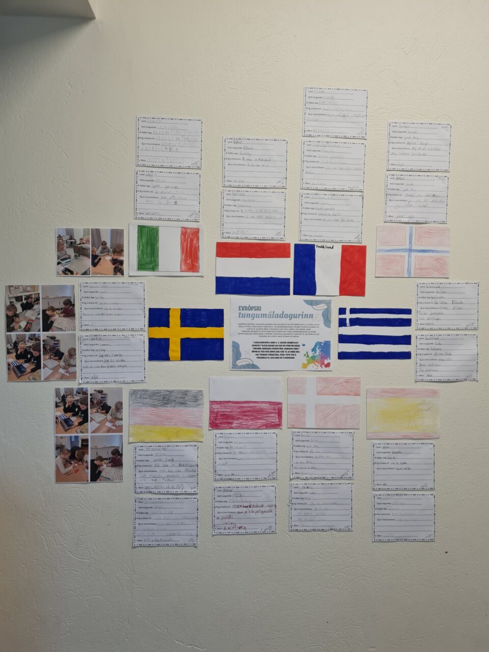 Í Laugalandsskóla vann 4.-6. bekkur skemmtilegt verkefni í tilefni dagsins undir leiðsögn Guðbjargar og Klöru. Þar kynntu nemendur sér tungumál nokkurra Evrópuþjóða. Nemendur unnu í hópum og fékk hver hópur eina þjóð til að vinna með. Þau teiknuðu þjóðarfána, þýddu texta yfir á tungumálið og lásu hann upp á myndbandi. Hér má sjá myndir af þeirri vinnu sem og afrakstrinum.