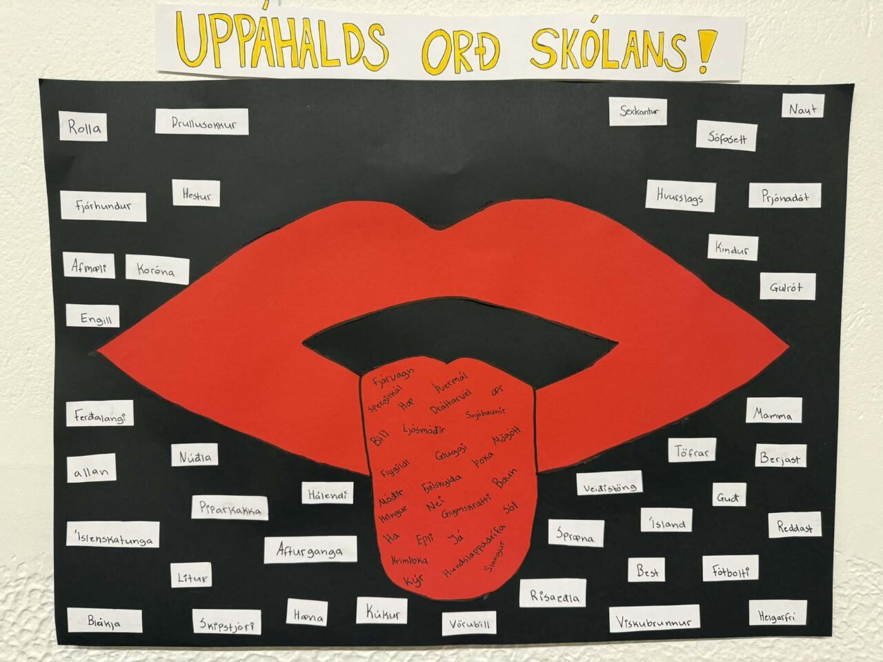Nemendur í 9. og 10. bekk söfnuðu saman uppáhaldsorðum allra í skólanum og unnu verkefni út frá því.