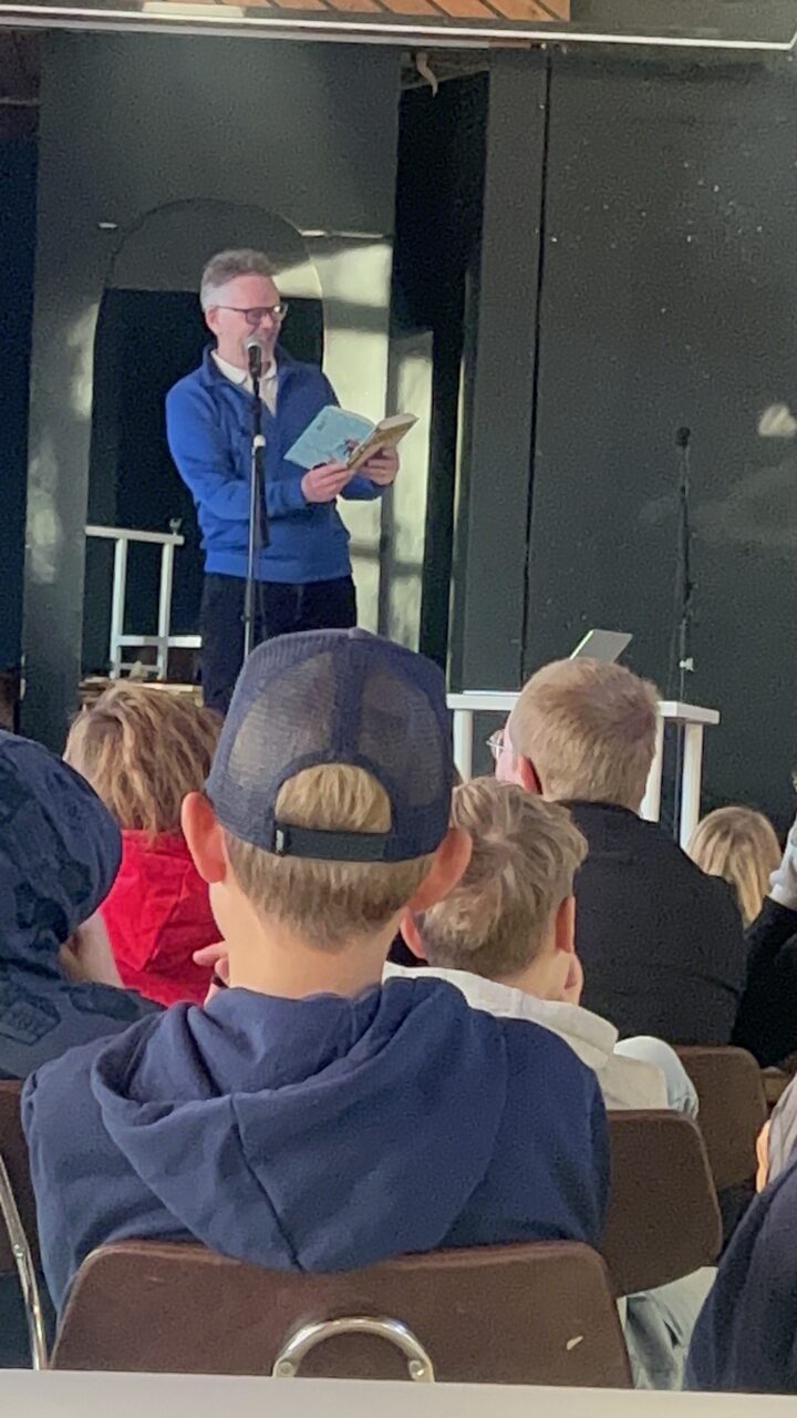 Gunnar Helgason heimsótti okkur í Laugalandsskóla síðastliðinn fimmtudag, 13. nóvember. Hann kynnti bókina sína Birtingur og símabannið mikla, las upp úr henni og sýndi krökkunum myndir. Að lestri loknum tók hann við spurningum úr sal og meðal annars var spurt hvort allir geti verið rithöfundar og hvernig maður skrifar bók. Hann kom með smá fræðslu um hvernig hann byggir upp bækurnar sínar og fengu nemendur smá örnámskeið í því.