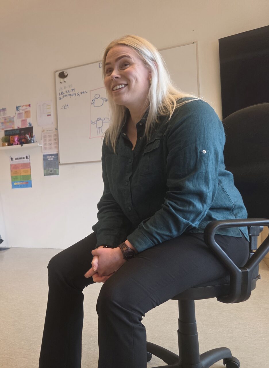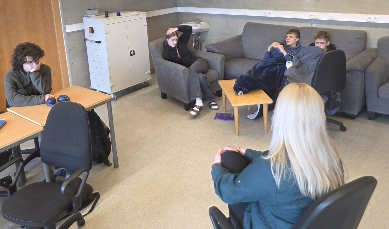 Harpa, nýr byggðaþróunarfulltrúi, sem mætti í tíma í upplýsingatækni í 10. bekk.