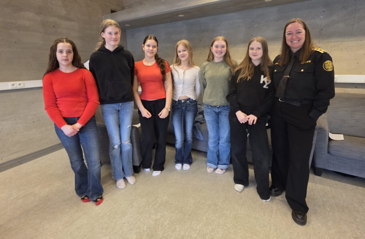 Arndís Soffía Sigurðardóttir, settur lögreglustjóri á Suðurlandi var gestur í tíma í félagsmálum í skólanum í dag þar sem hún hitti nokkra hressa nemendur, sem tóku áfangann í vali.